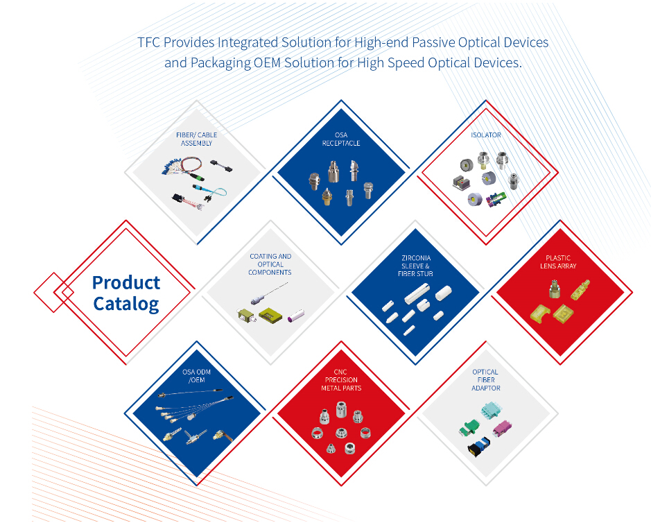 經過十余年砥礪耕耘,TFC在陶瓷、塑料、金屬、玻璃等基礎材料領域積累沉淀了多項全球領先的工藝技術,形成了Mux/Demux耦合制造技術、FA光纖陣列設計制造技術、BOX封裝制造技術、并行光學設計制造技術、光學元件鍍膜技術、納米級精密模具設計制造技術、金屬材料微米級制造技術、陶瓷材料成型燒結技術共八大技術平臺,為客戶提供垂直整合一站式產品解決方案,持續為客戶創造新價值。