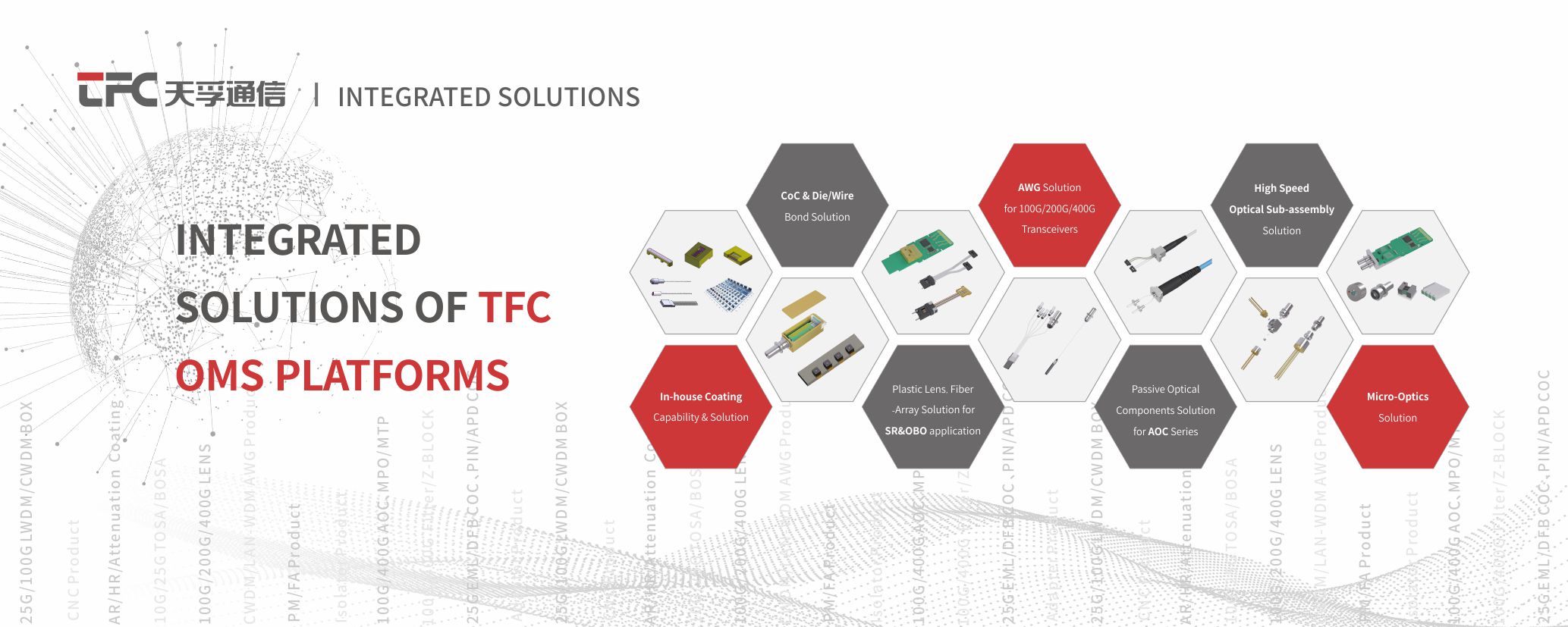 為滿足數據中心超高速率的器件傳輸需求,天孚通信在本次展會原計劃還將重點展示數據中心應用的400G/800G解決方案產品。TFC擁有超高精度自動貼片機和高效率金絲鍵合機,具有COC控溫老化測試能力,擁有高效率LENS自動耦合設備和高可靠性激光焊接組裝平臺,能為數據中心客戶提供高穩定性、高可靠性、高性價比的器件解決方案。
