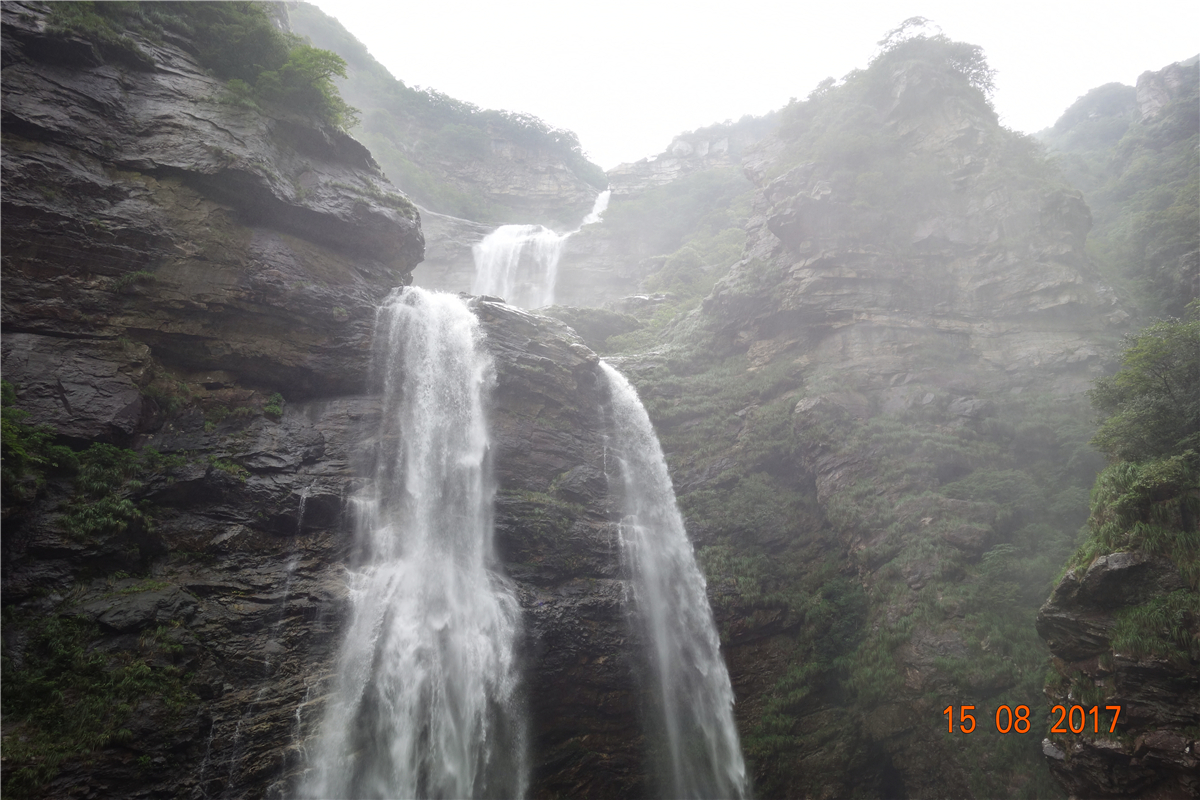 隨后移步廬山第一瀑布,具有玉龍奔騰而下之氣魄的三疊泉瀑布。“飛練拖雪”、“碎玉摧冰”、“玉龍飛潭”飛瀑流經的峭壁有三級,溪水分三疊飛瀉而下,落差達155米。大家到達底部后,身臨其境感受著:飛流直下三千尺,疑是銀河落九天“的磅礴氣勢。
