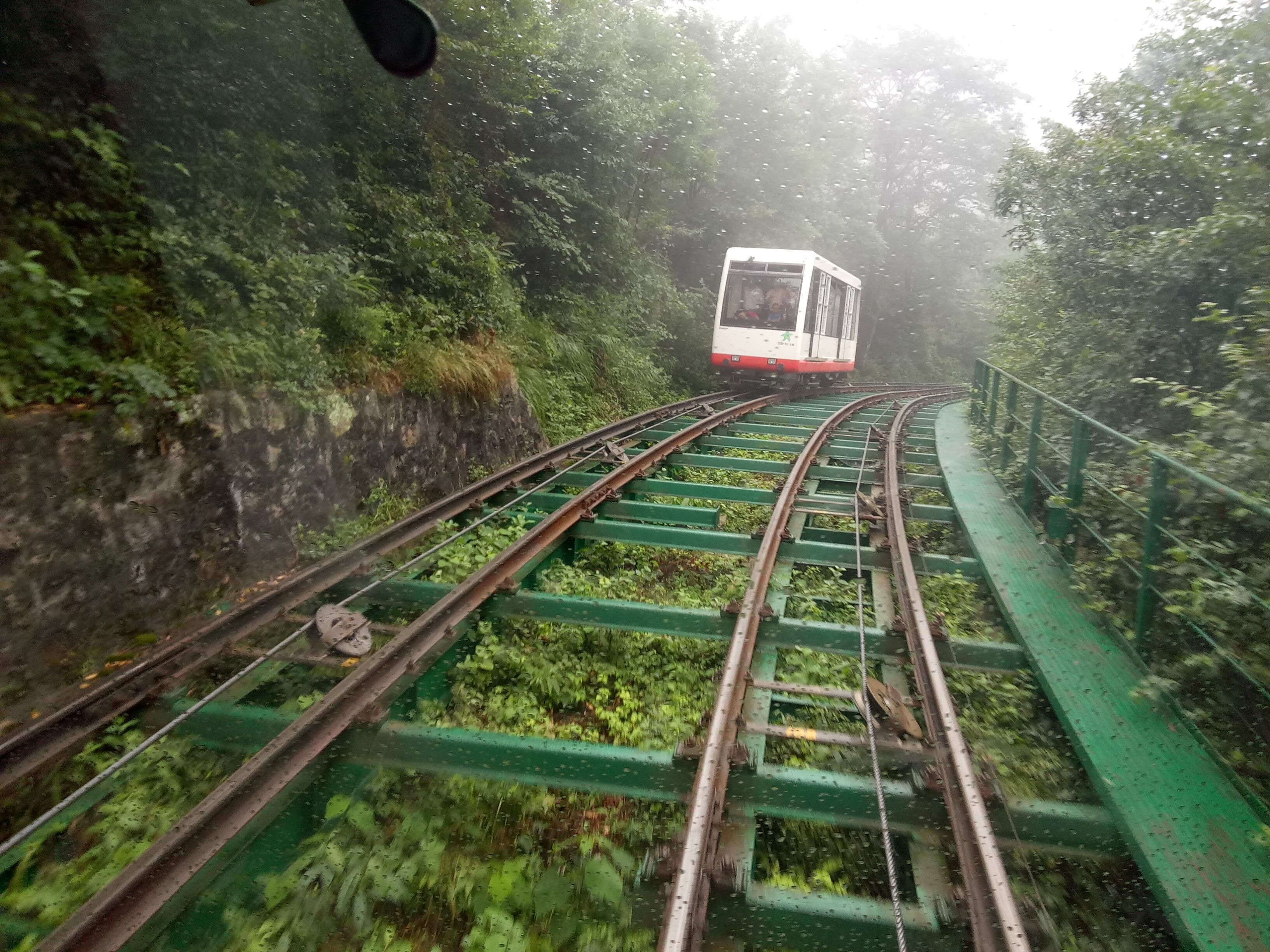 纜車疾馳,路程很短,沿途的風光卻引人側目。水流潺潺,亂石堆砌,典型的峽谷美景。兩旁云霧繚繞,山林松壑,悅目怡心!