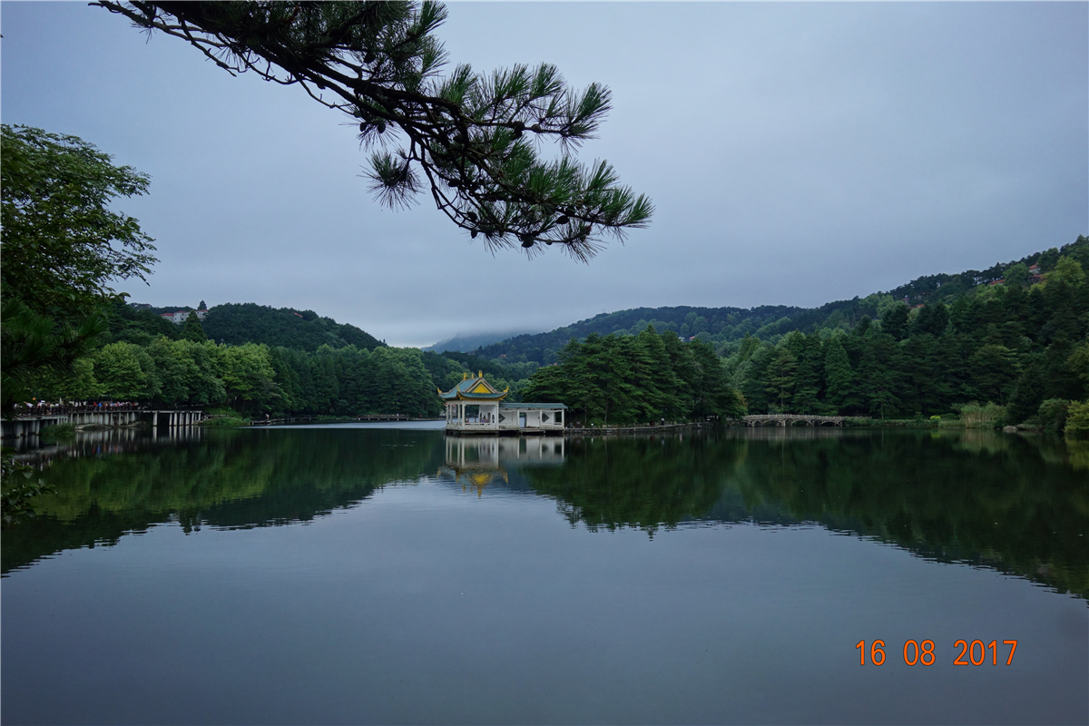 隨著導游的步伐,我們首先來到了有著“春如夢、夏如滴、秋如醉、冬如玉”之不同的美麗風光的含鄱口。此處可眺望我國第一大淡水湖鄱陽湖,同時可遠觀廬山最高峰漢陽峰,奈何天公不作美,我們只能夢醉煙雨朦朧。