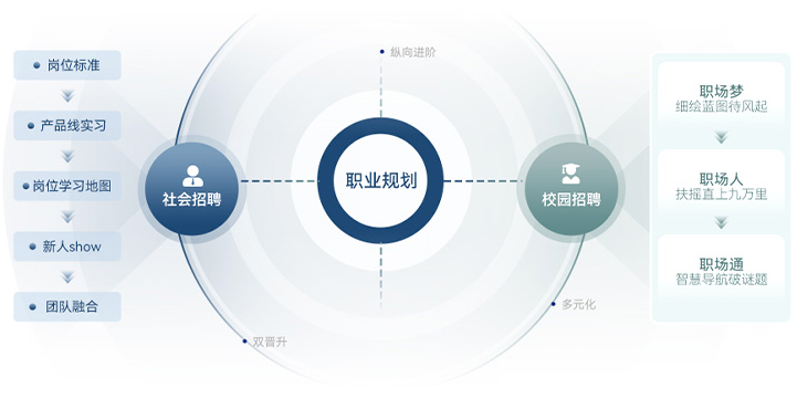 我們構建了一套完善的管理、專業(yè)雙晉升通道發(fā)展體系,為員工提供多元化的職業(yè)成長路徑。員工可以從自身能力和個人職業(yè)規(guī)劃出發(fā),選擇任意通道進行縱向進階,成為業(yè)務領域的專家或帶領團隊的Leader。